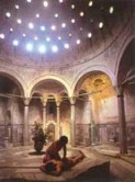 Les obertures en forma d’estrella de la cúpula del sostre fan arribar una llum descomposta que es barreja amb el vapor. Els volums harmoniosos del seu cos de dona tenen una definició rotunda en aquesta atmosfera etèria.